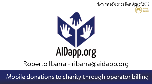 AidApp is the only social contribution app for iPhone, Android and Windows Phone that allows donations to NGOs billed directly to the donor's cell phone without the need of a credit card. The Challenge Donations billed directly to cell phone statements is the most innovative way to donate to Charity. The first time this was used masively was in the Haiti disaster of 2010 where 40 million dollars where collected over a week. In 2012, 245,000 USD where collected in 24 hours from the USA to send to Mexico. In 2013, $2 million dollars where collected for the Oklahoma tornado diaster relief in the USA in 24 hours. This year, 2 million pounds where collected in 48 hours for Cancer relief in the UK. This is expected to grow 900% in five years. However, if your NGO is not the size of the RedCross you will probably never be able to make deals with cell phone operators to collect like this. This is just unfair for the smaller NGOs and we are gong to fix this to enable this mechanism to all NGOs. The Solution The technology to bill directly to cell phones is a standard. There is no innovation there. However cell phone operators, pretty much world wide, charge a comission from 60 - 70% of what's billed through their networks; this makes no sense for donations. We will use the funds to negotiate with operators to lower this fee to 5% of even 0%. Operators don't want to deal with many NGOs to disperse donations, so operators just issue one payment to us, and we will disperse it to all the charities using our platform as well as solving legal issues since we are dealing with donations that are not necessarily invoiceable. We package all this is a very neat smartphone app so the user just taps the screen 3 times on his mobile phone, and he has donated a fix amount and then share in social networks. Target group and social impact NGOs in europe that require additional funding. It has been studied that donors prefer to donate through mobiles as they want to kee their donations anonymous to NGOs and they want to donate extremely fast upon being exposed to a stimulus to help ( donate ). Competences of the applicant Former CEO of software development company for 10 years, sold last year, 70+ employees, millions of USD in sales Negotiated millions of dollars of government/private funding for IT research in Brasil, Chile, Mexico and Finland Apps with millions of downloads worldwide Nominated top innovator under 35 by MIT Tech. Review Serial entrepreneur in board of 4 ventures CEO of this venture, AidApp