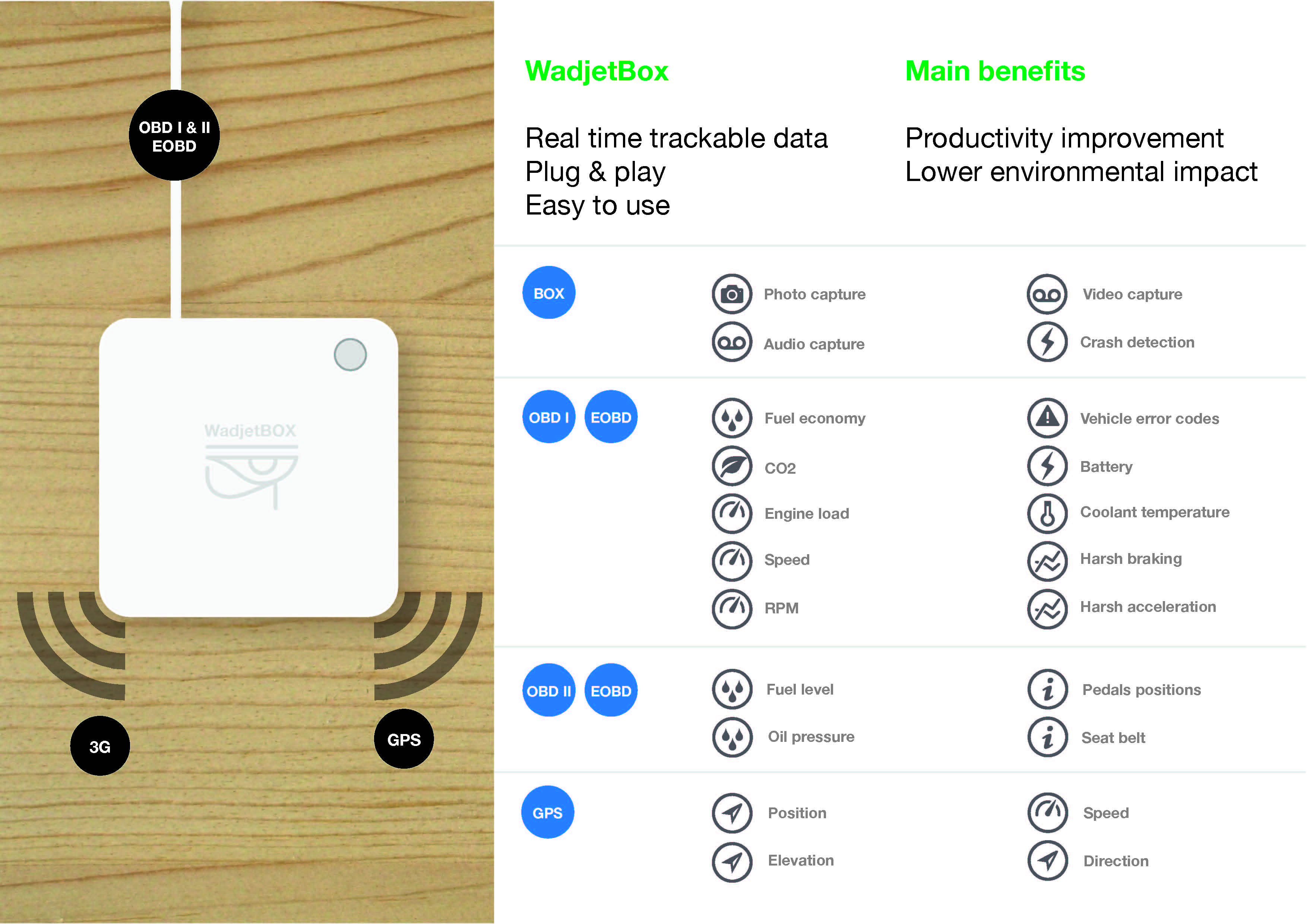 A real-time app to generate savings in the energy consumption related with road transport. The app provides feedback to the driver about his driving behavior as well as about the energy inefficiency sources of the vehicle. The Challenge Road transport contributes about one-fifth of the EU's total emissions of carbon dioxide (CO2), the main greenhouse gas. CO2 emissions from road transport increased by nearly 23% between 1990 and 2010, and without the economic downturn growth could have been even bigger. Transport is the only major sector in the EU where greenhouse gas emissions are still rising. According to the US Department of Energy , only about 15% of the energy from the fuel you put in your tank gets used to move your vehicle down the road. More the 60% of the energy is lost due to inefficiencies in energy transfromation as well as due to heat, friction, and inefficiencies in the engine and drive train. On top of that, up to additional 25% is lost due to an agressive and inefficient driving behaviour. The Solution Wadjet consist of a hardware and software integrated system which allows and automatic recording of real-time data from the sensors of the vehicle, voice, image and location. Data from the sensors is gathered through a device connected to the OBD port. The features provided, allow the driver to learn by doing through a mobile app and via web. Users can monitor speeds, excessive idling, harsh braking, harsh acceleration, efficiency in choosing routes, or mechanical health of the vehicle. These information helps drivers identify waste, correct the problem and reduce fuel costs and emissions as well as improving safety control. Wadjet includes social features to facilitate benchmarking, awareness and collaborative learning. Next step would be a beta version based on the current prototype. Target group and social impact All drivers (globally) using vehicles produced since 1 January 2004 could be benefited by Wadjet. The solution could be implemented at individual or collective levels, for example through eco-driving communities (smart cities) or at business level (fleet management). Considering the effects of real-world driving conditions, the most aggressively driven trips could still realize fuel savings on the order of 20% from implementing efficient driving techniques. Even starting from more moderate driving styles, efficient behaviors can reduce fuel consumption by 5%-10%. Widespread penetration of such efficiency improvements could result in significant aggregate fuel savings. Therefore, the minimum reduction related with the use of Wadjet allows to reduce fuel consumption and emissions by 5-10%. Competences of the applicant The members of the team are Jorge and Xabi. They have been working together since 2004 in different IT projects for third parties. Jorge Fernández has more than 10 years of experience designing and building digital products for public and private entities. Xabier Chao is an international business developer specialized in innovation funding, with high experience in Europe and LATAM.